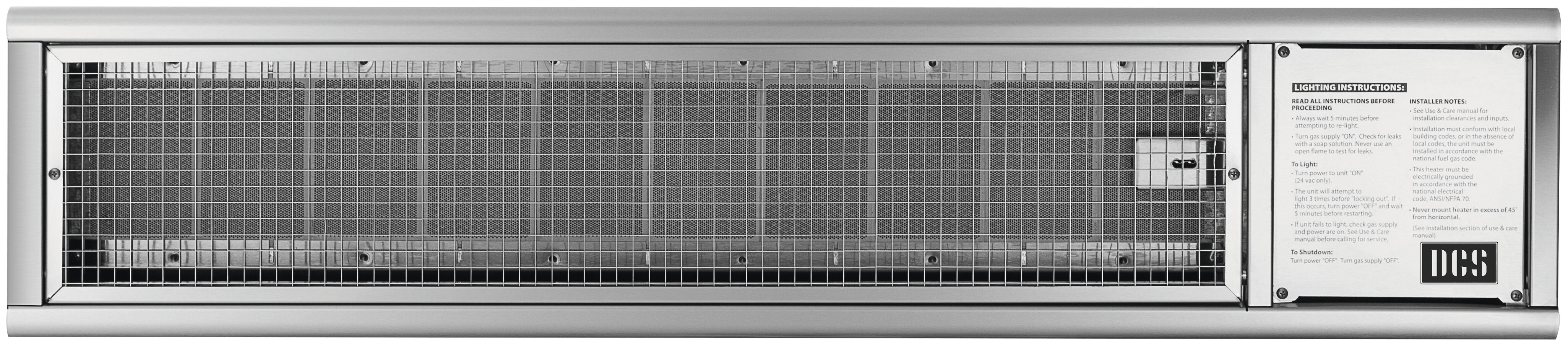 An outdoor heater at your favorite restaurant always makes a dinner outside more enjoyable. You can have the same experience in your own outdoor kitchen with the DCS Built-In Patio Heater. DCS has a long history of producing safe, efficient and high performance outdoor heaters for restaurants and hotels. The attractive wall-mounted heater features 56,000 BTU of comfortable heat up to 15 feet away. Available in Natural Gas Only. Optional One-Channel remote sold separately.