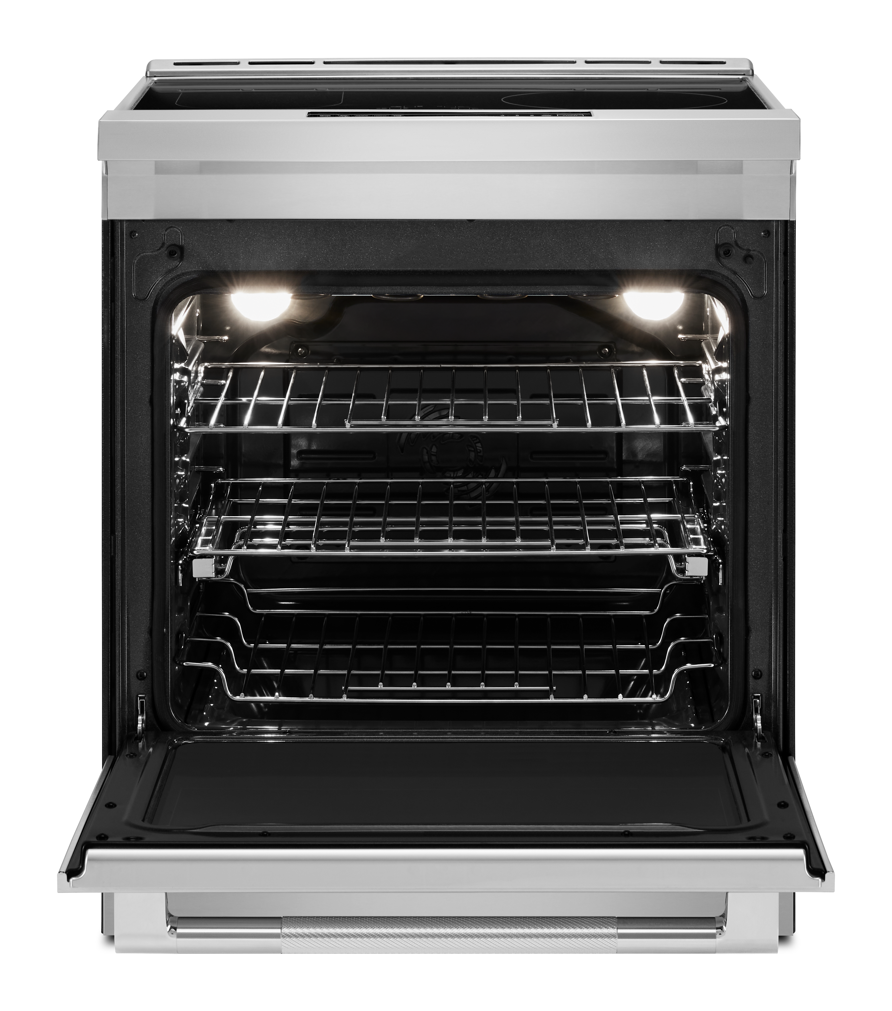 Precision and power meet flexibility in the RISE™ Induction Slide-In Range. The fast and flexible Magnetic Induction cooktop features Assisted Cooking, which selects an optimal power level to boil, simmer or melt for you. The True Convection oven circulates steady, even heat around every rack to cook multiple dishes at once.