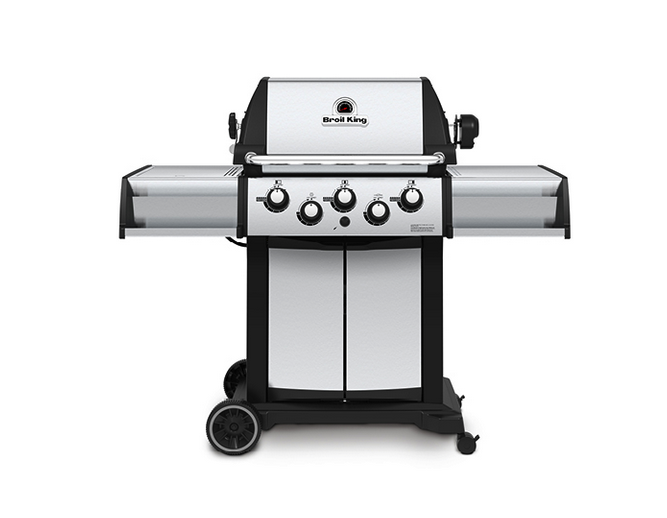 The Signet™ 390 features 635 sq. in. total cooking space including a porcelain coated warming rack, reversible heavy-duty cast iron cooking grids, stainless steel Flav-R-Wave™ cooking system, 3 stainless steel Dual-Tube™ burners, and stainless steel drop-down side shelves and enclosed cabinet base.