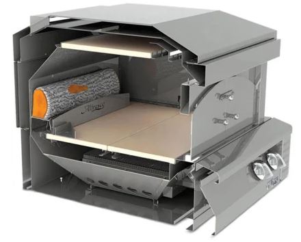 The Alfresco Inch Built-In Pizza Oven Plus offers 20,000 BTUs of infrared heat and integrates perfectly into any Alfresco outdoor kitchen. For the true outdoor entertainer, this all new revolutionary infrared pizza oven is available as a cart model or built-in. The Alfresco pizza oven is sure to become your favorite creative culinary tool. It preheats in 16 min. and can reach over 1000° F, allowing you to roast, bake, iron-skillet sear, and of course, cook perfect three-minute Neopolitan pizzas.