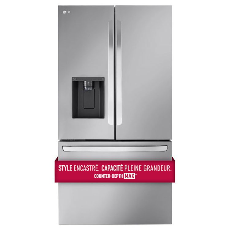 This 26 cubic feet capacity French Door refrigerator from LG gives you enormous space to store all of your family/s favourite and keep them organized. You can stop worrying about water quality since it is equipped with the Ice and Water System that does not only filter your drinking water, but also distributes cubed and crushed ice, as well as accommodating just about any container. The LG door cooling system gives a blast of cool air to reach all areas of the refrigerator/including the door/to help maintain consistent temperatures from top to bottom and its smart feature monitors and maintains conditions to keep food freshness longer. The wide bottom freezer contains two side-to-side drawers that easily slide thanks to their gliding system and Smart Pull handle. Stainless steel finish everyday cleaning is part of the past, while the French Door Refrigerator is made of a PrintProof finish. It gives more time to spend on other things, like playing with the kids or walking the dog, knowing that ThinQ Smart technology will notify you of any issue in real time on your smartphone.