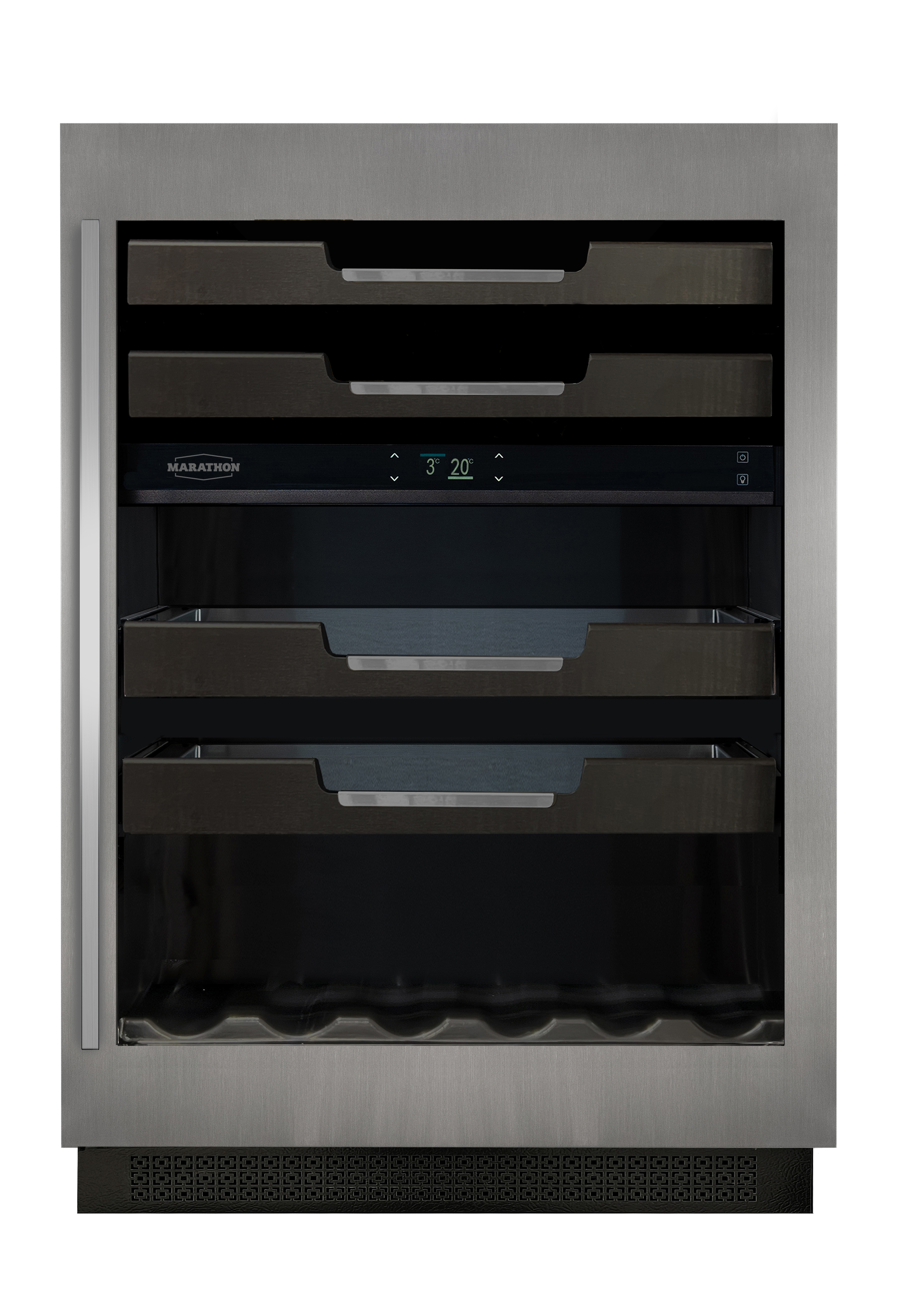 Capacity up to 16 wine bottles. Temperature Range: 3-20°C (37.4-68°F)