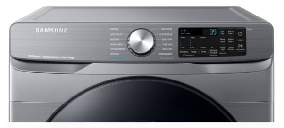 Samsung 7.5 cubic feet gas dryer with Steam and SmartCare. SmartThings Wi-Fi embedded smart appliance equipped with Steam Sanitize+, which helps remove wrinkles, odours, and static. Sensor Dry helps prevent over drying for optimal fabric care.